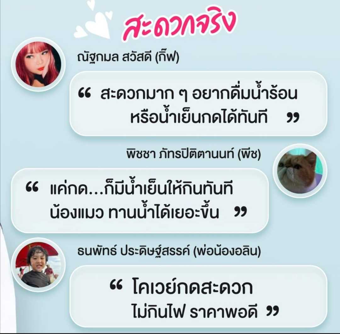 เริ่มต้นวันละ 16 บาท ดื่มน้ำสะอาดเพื่อสุขภาพ น้ำสะอาดจริง ประหยัดค่าน้ำจริงการันตีจากผู้ใช้จริง ไม่ต้องคอยซื้อน้ำขวด ไม่ต้องห่วงเรื่องน้ำตกตะกอน กดดื่มได้ตลอดทั้งน้ำร้อน น้ำเย็น